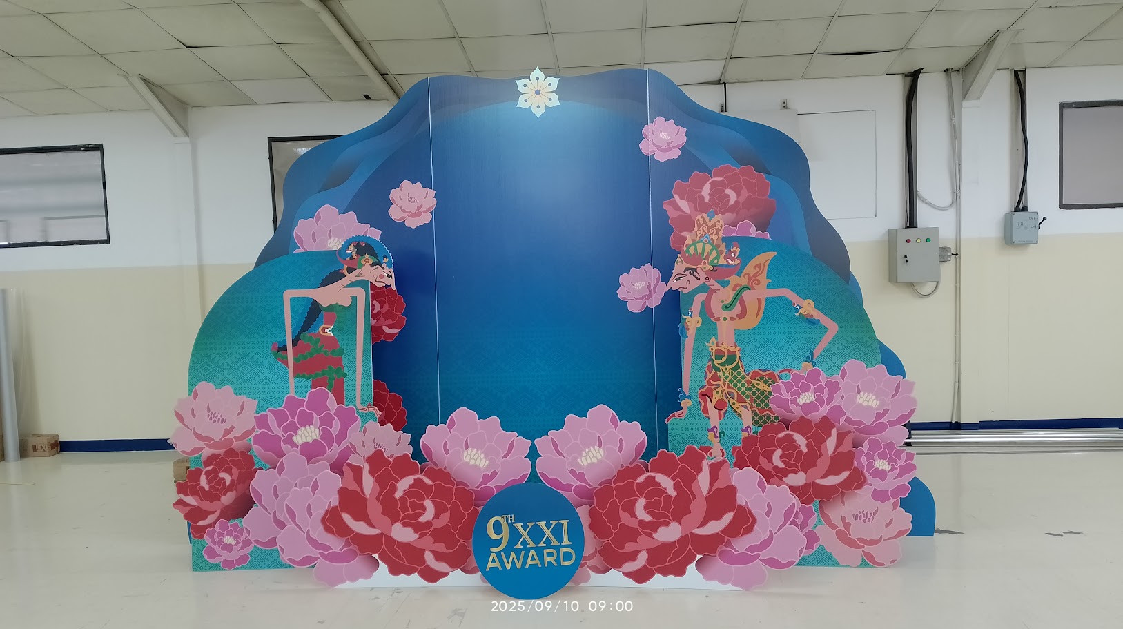Untuk ukuran yang dapat di produksi dapat di buat custom seperti ukuran backdrop diatas ini 300x600cm. Dengan menggunakan Bahan corrugated paper atau bahan kardus double wall yang di lapis sticker dan kemudian dipotong dengan menggunakan teknik potong digital. Penggunaan corrugated untuk backdrop memungkinkan pemasangan yang mudah, karena penggunaan bahan yang ringan yang bisa di pasang sendiri tanpa bantuan khusus dari orang kontraktor atau dari Event Organizer.