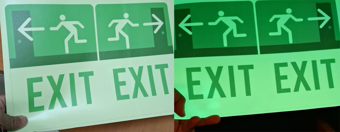 Sticker Glow In The Dark banyak digunakan di gedung gedung atau bioskop, utamanya digunakan sebagai sign atau penunjuk arah, misal: untuk penunjuk arah ketika dalam keadaan gelap, seperti ketika lampu mati.
